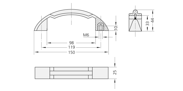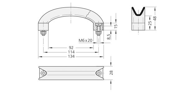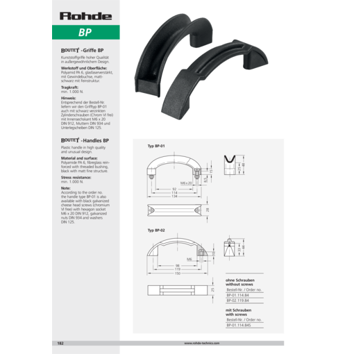PPodle zadání obj. č. dodáváme typ rukojeti BP-01 též s černými pozinkovanými šrouby s válcovou hlavou s vnitřním šestihranem M6x20 DIN 912, maticemi DIN 934 a podložkami DIN 125.