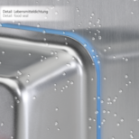 Gehäuse aus Edelstahl 1.4404 (316L), Oberfläche mit Rautiefe (Ra) <0,8 μm. Dichtung aus Kunststoff mit FDA Zulassung für den Lebensmittelbereich.