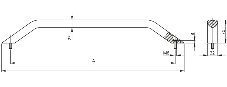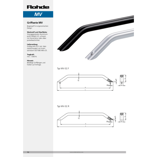 Handle type MV-32.F incl. stainless steel screws with hexagon socket ISO7380 M8 × 25.