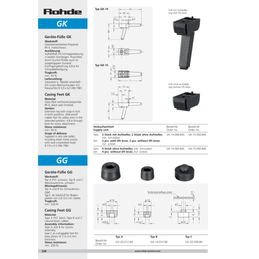 Type C as a pluggable foot for base plates of 2–3 mm thickness.