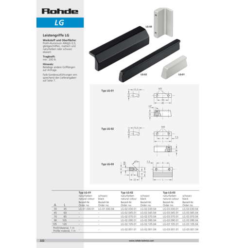 Profiled aluminium AIMgSi 0.5; vibration ground, and anodized with a matt finish in natural or black colour.
