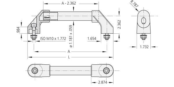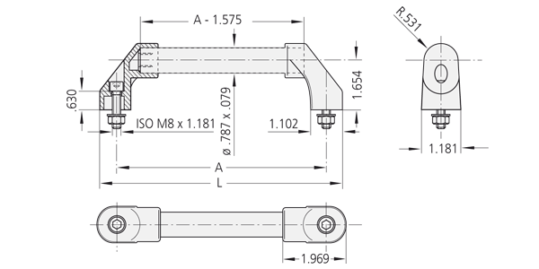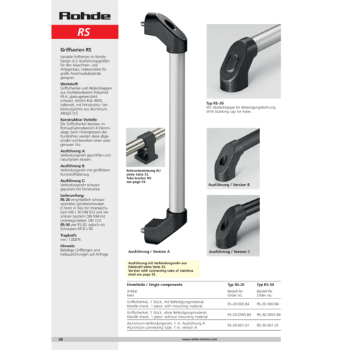 Variable handle series in Rohde design in 2 versions for machine and installation construction; particularly suitable for wide bore clearances.