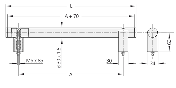 For front mounting by cylinder head socket screws M6x85 DIN 912, nuts DIN 934 and washers DIN 125 made of stainless steel (included in scope of supply). Tube holders and tube caps made of polyamide PA6, glass ball reinforced, black, half-matt with fine structure.