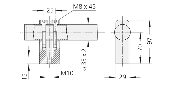At front attachment including stainless steel cylinder head socket screws DIN 912, nuts DIN 934 and washers DIN 125.