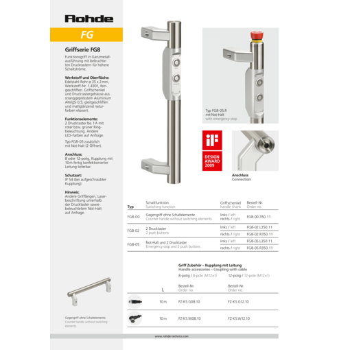 | Product Type FG8-02 | Description 2 push buttons | Handle shank version right | Order-No. FG8-02.R350.11 3D+CAD |