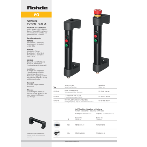 | Product Type FG16-05S | Description 2 push buttons, emergency stop and 2 LEDs | Order-No. FG16-05S.180.84 3D+CAD |