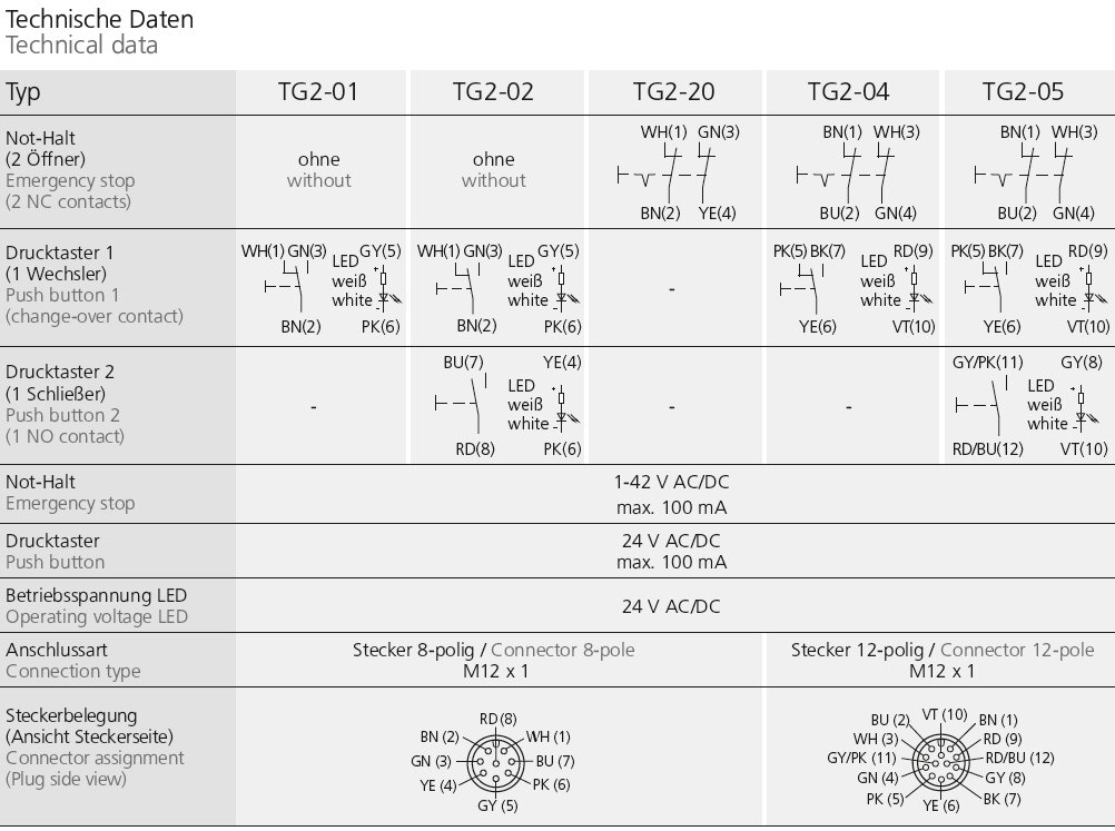 | Product Type TG2-04 | Description 1 push button and emergency stop | L 200 | Version right | Order-No. TG2-04.RA200.11 3D+CAD |