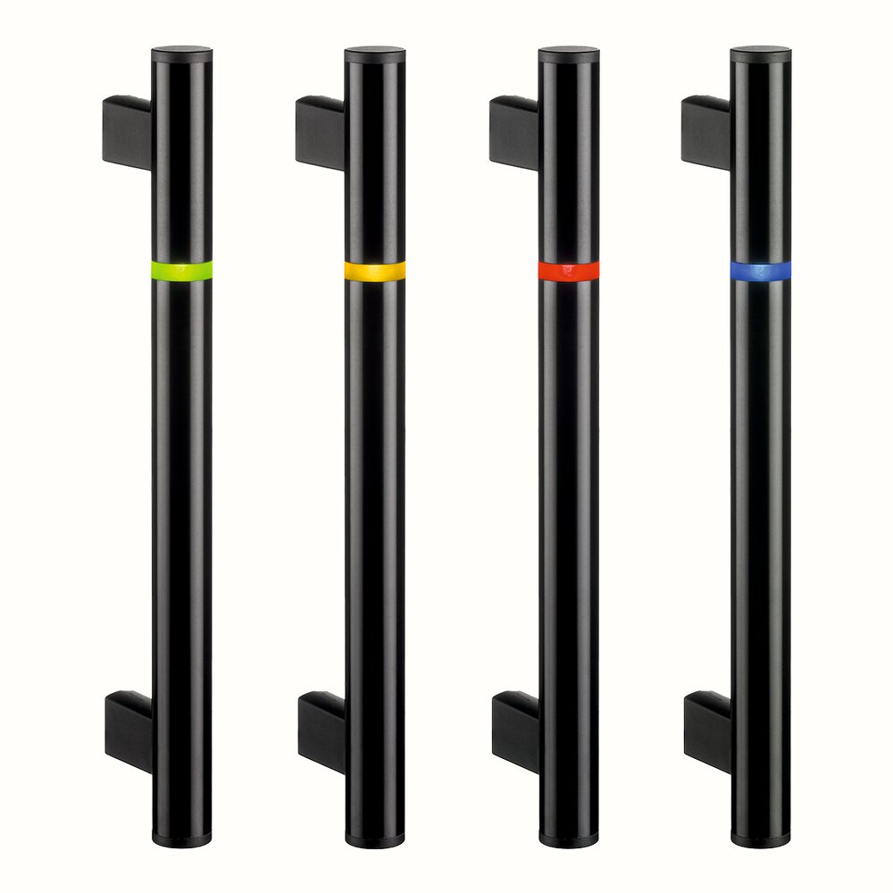 Aluminum tube AlMgSi 0.5; grounded and black anodized. Shanks and caps made of polyamide PA6 black with fine structure.