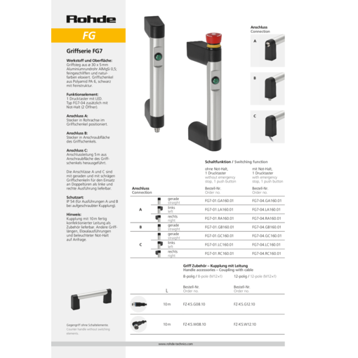 | Product Type FG7-04 | Description 1 push button and emergency stop | Handle shank version left |