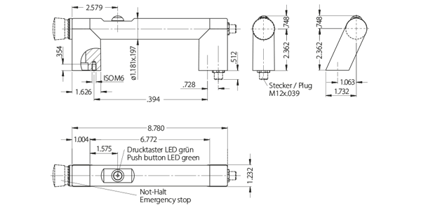 | Product Type FG7-04 | Description 1 push button and emergency stop | Handle shank version straight |