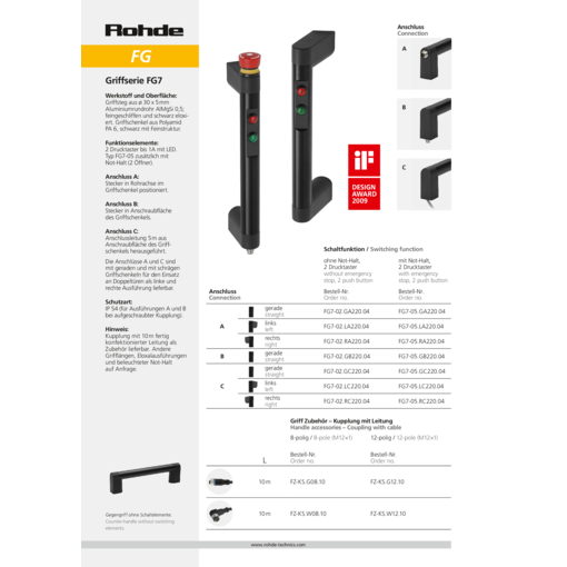 | Product Type FG7-02 | Description 2 push buttons | Handle shank version straight |
