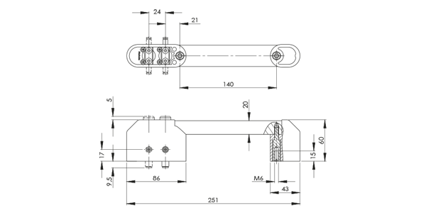 Shanks made of polyamide PA6 black half-matt finish with fine structure. Ledge made of profiled aluminum AlMgSi 0.5 blasted and natural anodized.