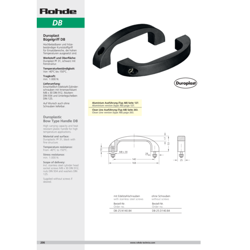 Incl. stainless steel cylinder head socket screws M8x30 DIN 912, nuts DIN 934 and washers DIN 125. Supplied without screws if desired.
