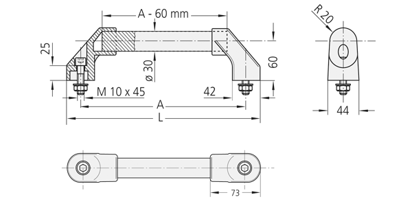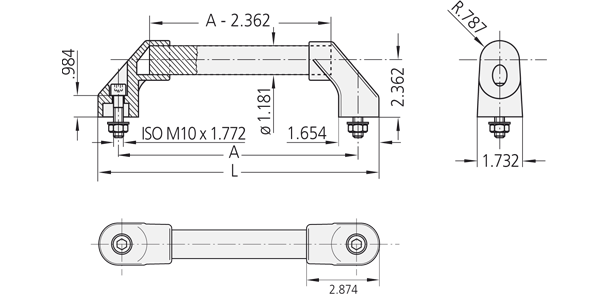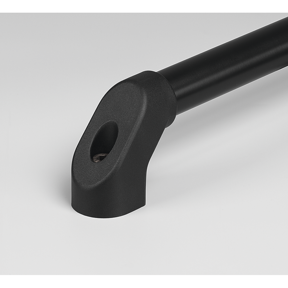 Handle shanks made of glass ball reinforced polyamide PA6, flat-lustrous with fine structure. Handle ledge made of POM in grey or black.