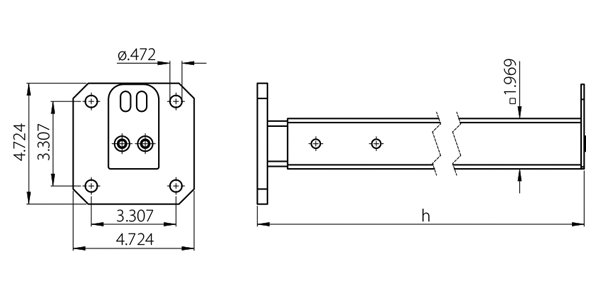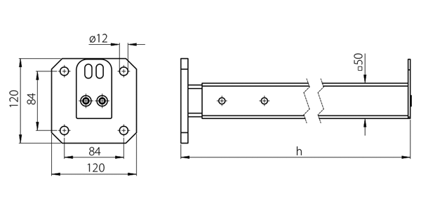 The posts are made of square tube 50x50x2mm and are delivered with anchoring base.