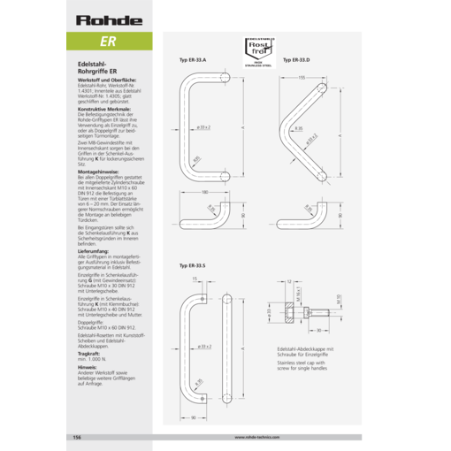 The fastening technology of the Rohde handle ER types makes it possible to use them as single handles or as double handles for twosided door assembly.