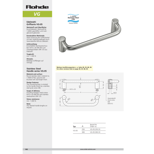 Including hexagon head screws M10x20 DIN 933 and stainless steelwashers DIN 125.