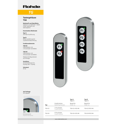 | Product Type TG6-E4 | Description 4 push buttons |
