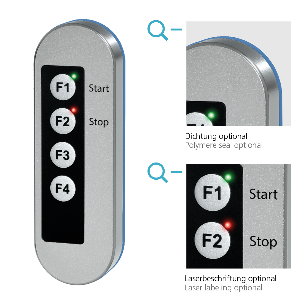 Housing made of stainless steel 1.4404 (316L); blasted and electropolished.