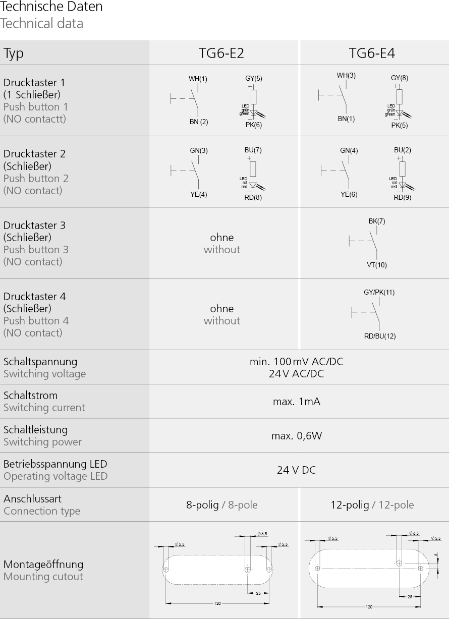 | Product Type TG6-E2 | Description 2 push buttons |