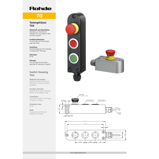 | Product Type TG4-04 | Description 1 push button and emergency stop | A 104 | L 120 |