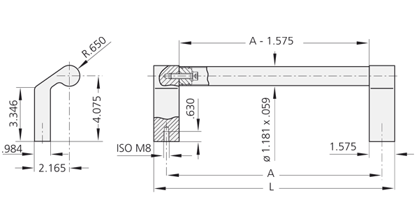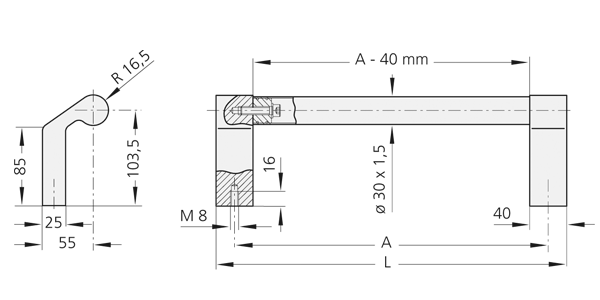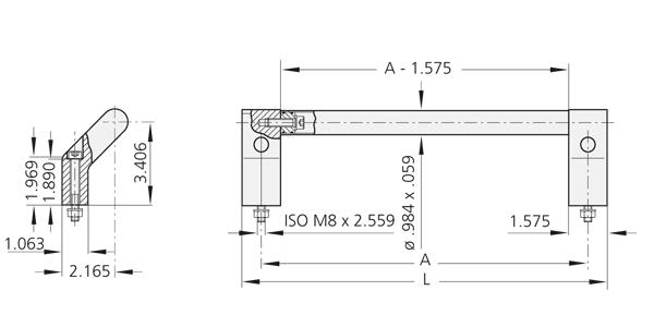 Handle shanks of extruded aluminium AlMgSi 0.5; natural colour anodized with dull bright finish. Tube and tube connecting screws of stainless steel, clamping sleeves of stainless steel; tube fine ground