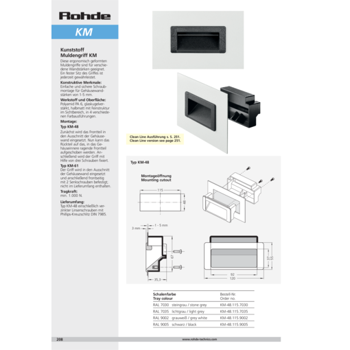 These ergonomically formed trough inset handles are suitable for different wall thicknesses. A stable fitting of the handle is guaranteed at all time.