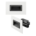 The front section will be set into the recess of the housing wall first. Now the rear section can be pushed onto the front section, which is projected into the housing interior. Afterwards the handle will be fixed in position by three screws.