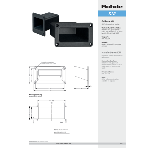 The handle will be set into the recess of the housing wall and fixed front sided with 4 countersunk screws; not included in scope of delivery.