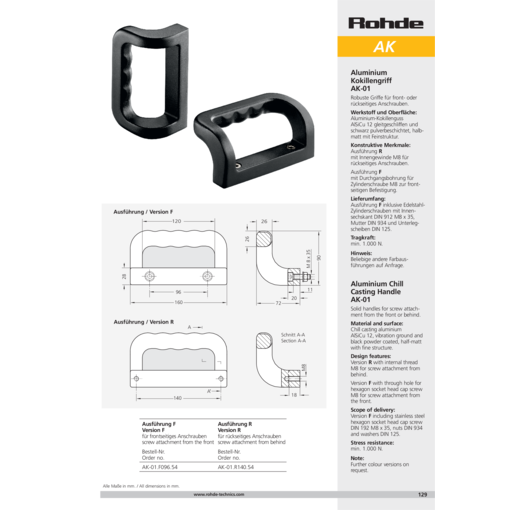 Modelo F incluye tornillos cilíndricos de acero inoxidable DIN 912 M8x35, tuerca DIN 934 y