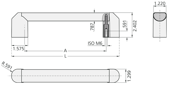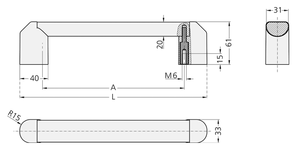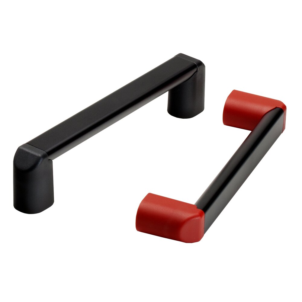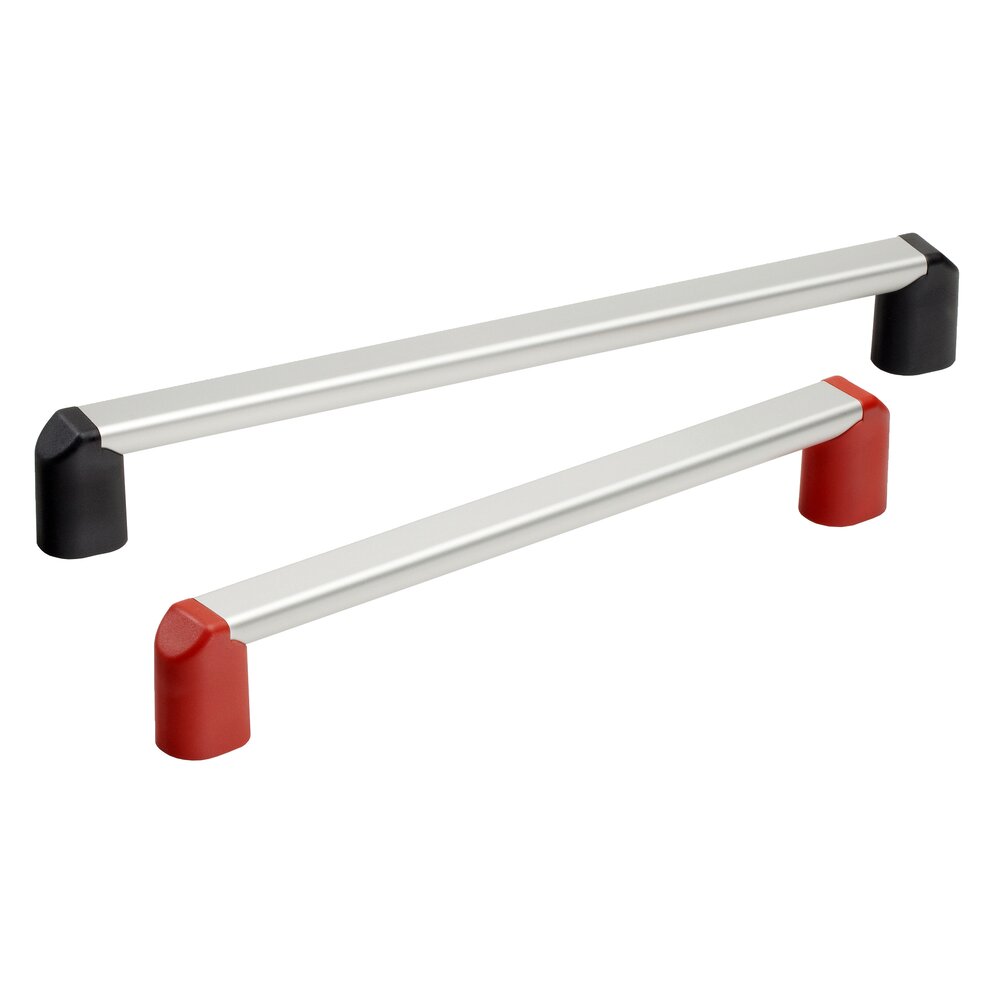 Tubo del asa de tubo ovalado de aluminio extruido (AlMgSi 0,5). Anodizado en color natural o negro. Soportes laterales del tubo del asa de poliamida PA 6 de estructura fina en negro (similar a RAL 9005) o rojo (similar a RAL 3020).