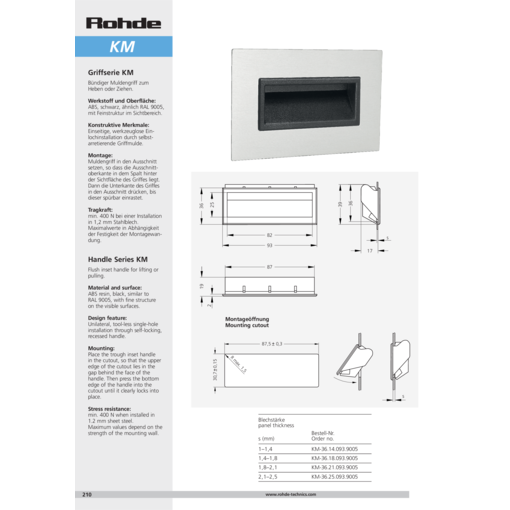 Placer la poignée creuse dans la découpe de telle façon à ce que le bord supérieur de la découpe soit placé dans la fente derrière la surface visible de la poignée. Insérer ensuite le bord inférieur de la poignée dans la découpe jusqu’à ce que celle-ci s‘enclenche.
