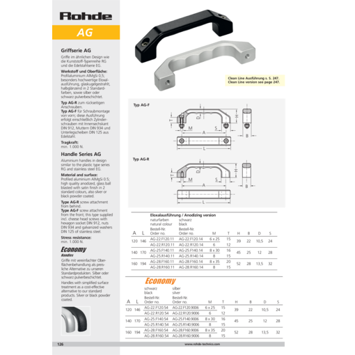 Massicce maniglie in alluminio con design industriale simile alla gamma di modelli in plastica RG e alla serie in acciaio inox EG.