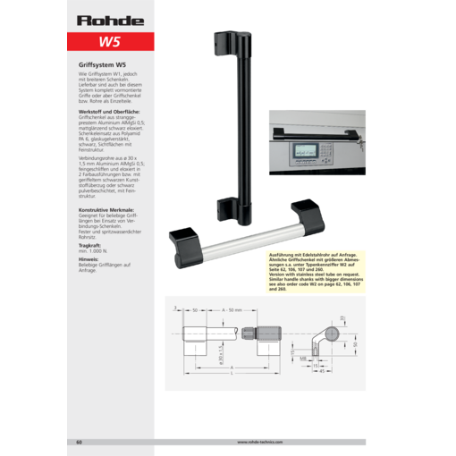 Stesse caratteristiche del sistema di maniglie W1, ma con supporti più larghi. Anche per questo sistema sono disponibili maniglie completamente pre-assemblate oppure supporti e/o tubi come pezzi sciolti.