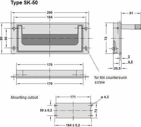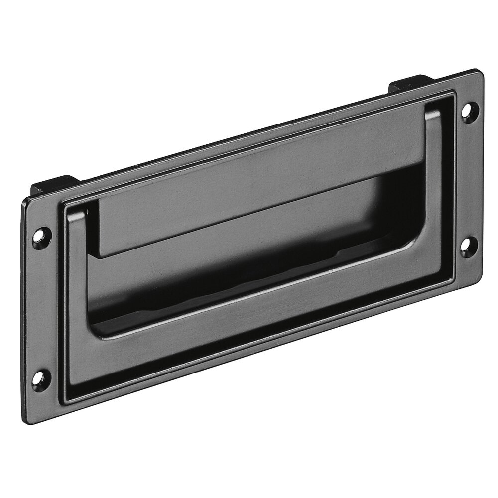 Possibilità di montaggio anteriore o posteriore rispetto alla parete dell'alloggiamento con la stessa apertura sull'alloggiamento. Naturale sagomatura per le dita sulla parte posteriore della maniglia ripiegabile. Utilizzabile per sollevare un apparecchio anche in posizione chiusa.