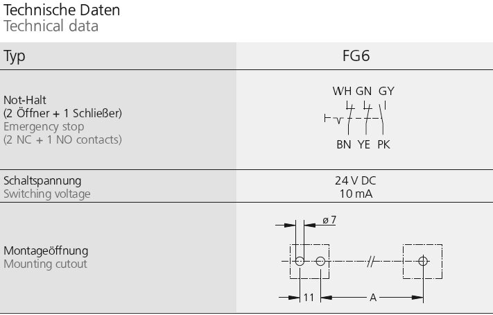 Arresto di emergenza con 2 contatti di apertura e 2 contatti di chiusura