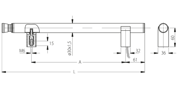 Tubo Ø30×1,5 mm in acciaio inox, materiale n. 1.4301; microfinito. Supporti e cappucci tubo in poliammide PA6 nero, con struttura fine.
