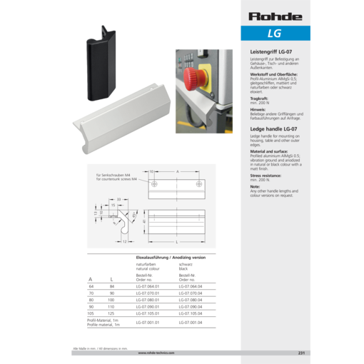 ハウジング、 テーブル及びその他の外部エッジへの取り付け用バーハンドル。