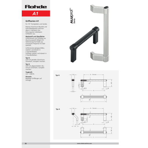 Do płyt frontowych 19″ i urządzeń. Do znaków szczególnych tej serii uchwytów, dostępnych w dowolnych długościach, należą masywne elementy konstrukcyjne z aluminium oraz wysoka obciążalność.