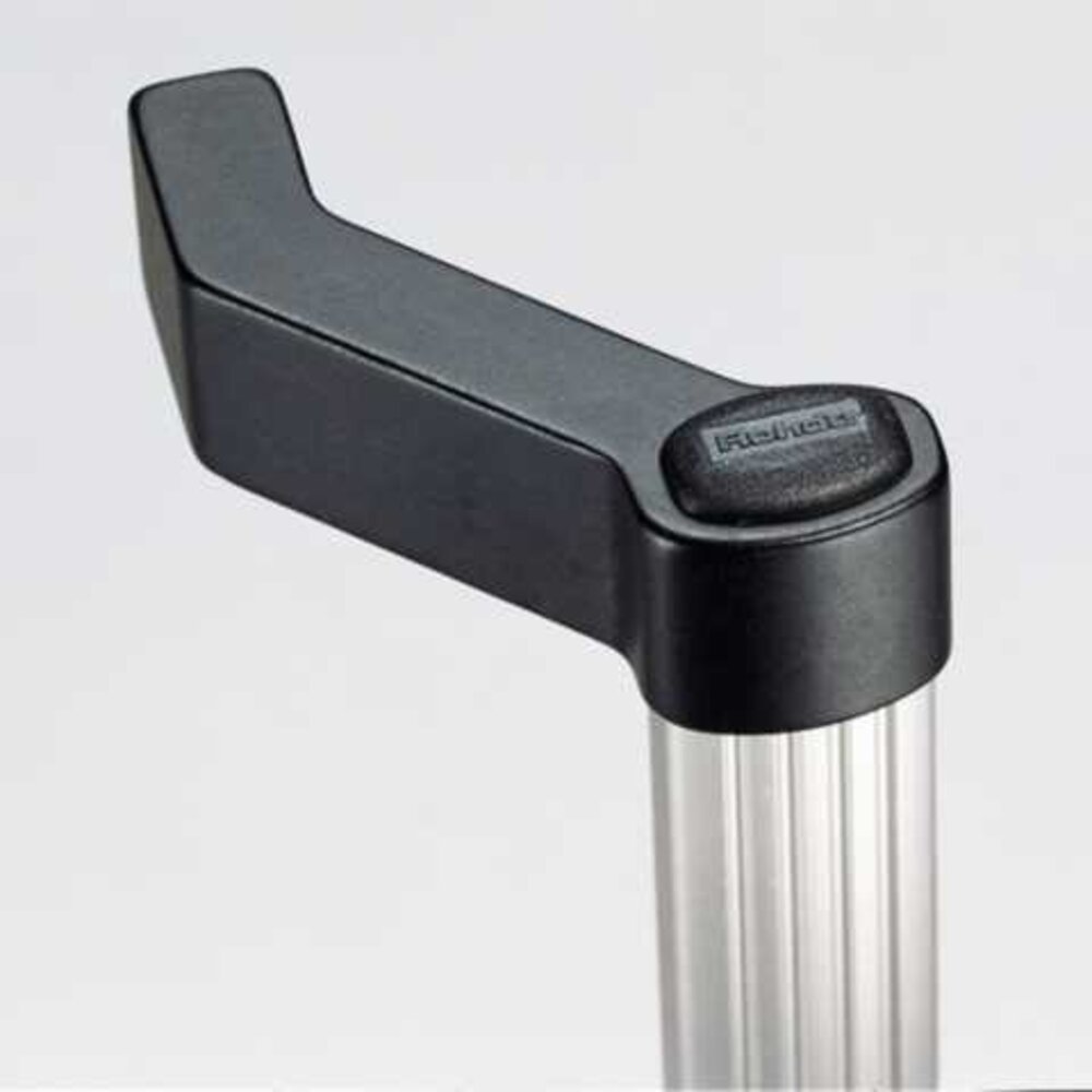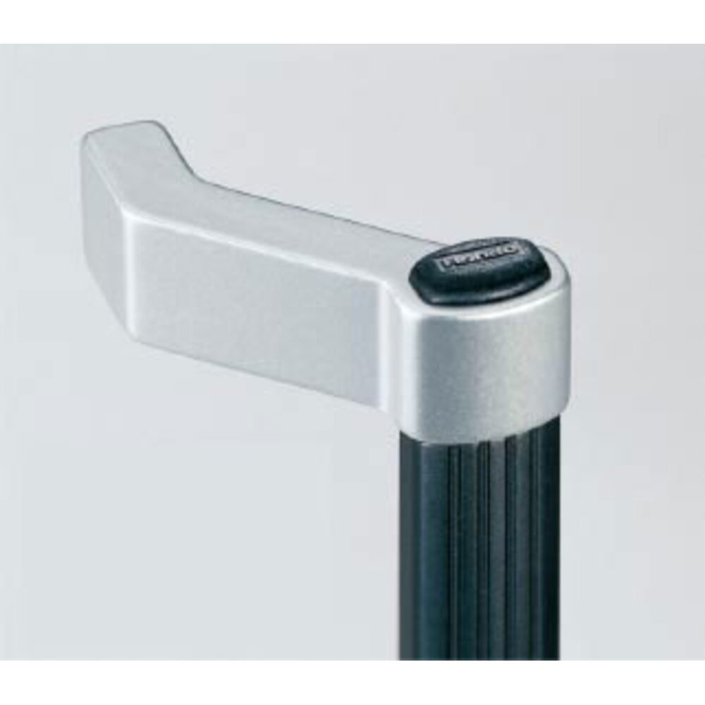 Ramię i mostek uchwytu z profilu aluminiowego AlMgSi 0,5. Łączniki kształtowe z czarnego poliamidu z kołkiem ze stali szlachetnej.