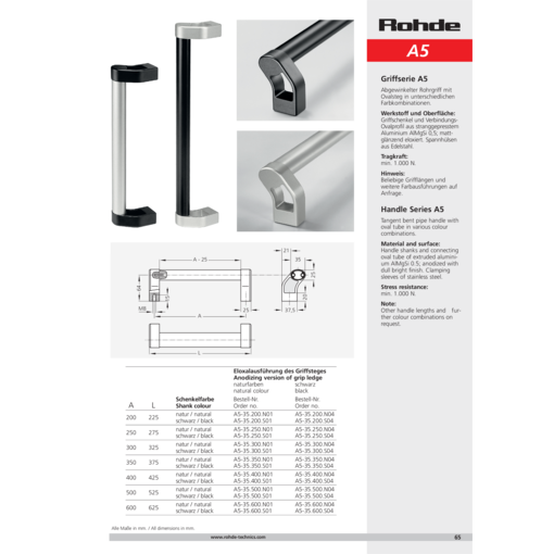 Ramię uchwytu i owalny mostek połączeniowy z aluminium AlMgSi 0,5, eloksalowanego matowo-wybłyszczająco. Tuleje mocujące ze stali szlachetnej.
