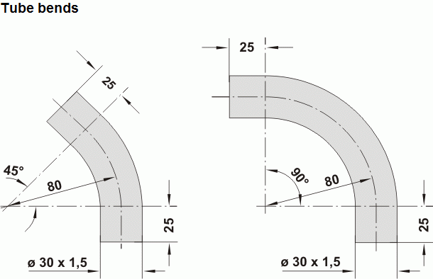 | Kolanka rurowe Ø 30 x 1,5 [mm] |