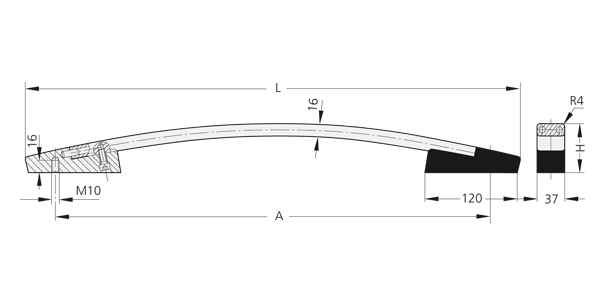 Mostek z profilu aluminiowego AlMgSi 0,5, matowanego i eloksalowanego na kolor naturalny lub czarny, powlekanego proszkowo, o drobnej strukturze.