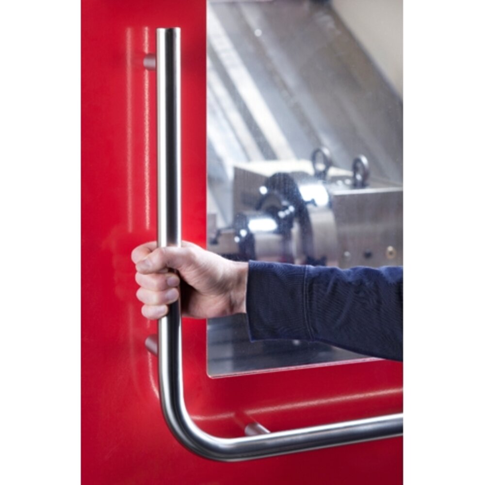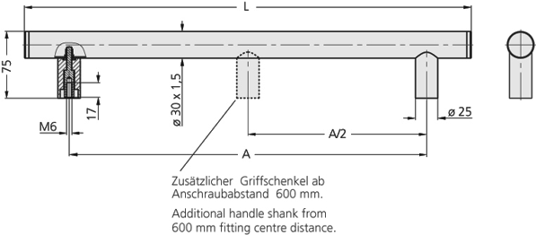 Tubo ø30x1,5 mm e porta-tubo em aço inoxidável, material Nr. 1.4301, com polimento fino. Tampas em aço inoxidável, material Nr. 1.4305, finamente torneado.