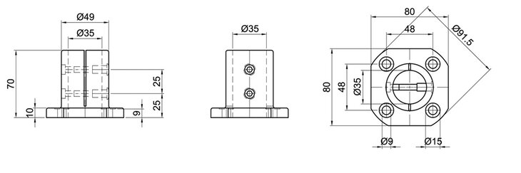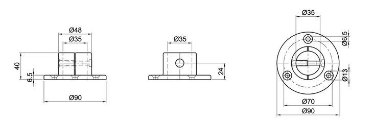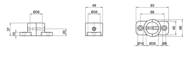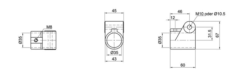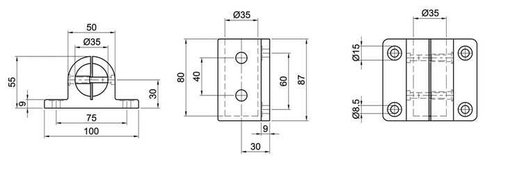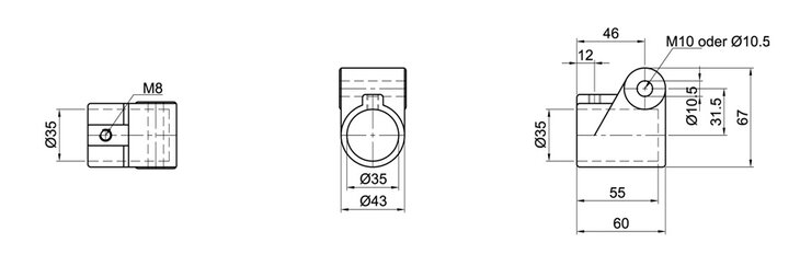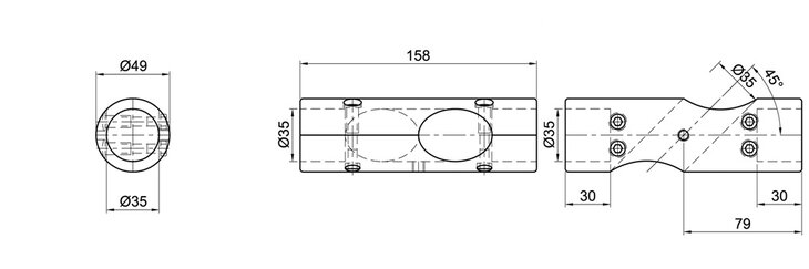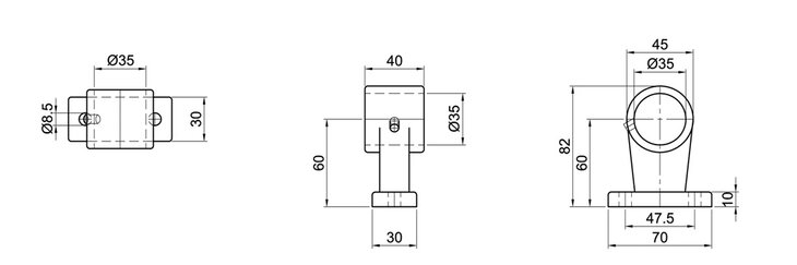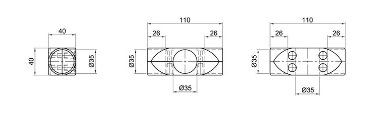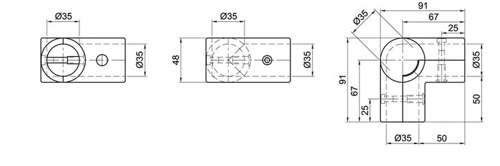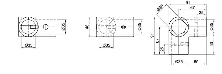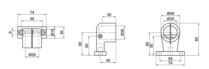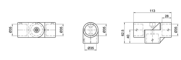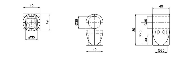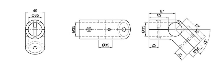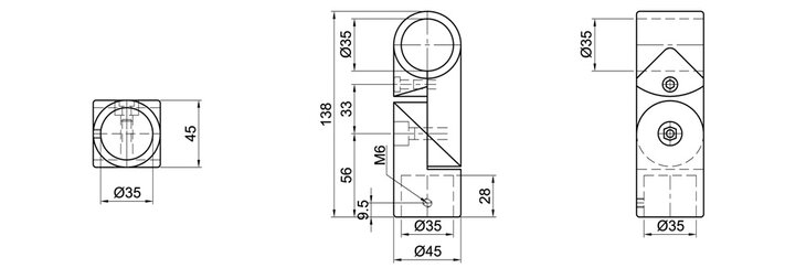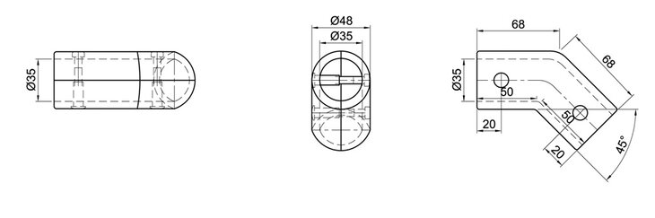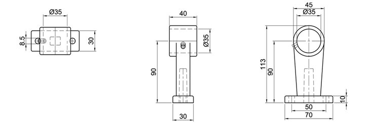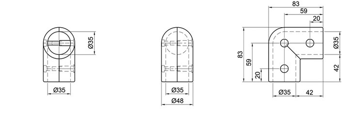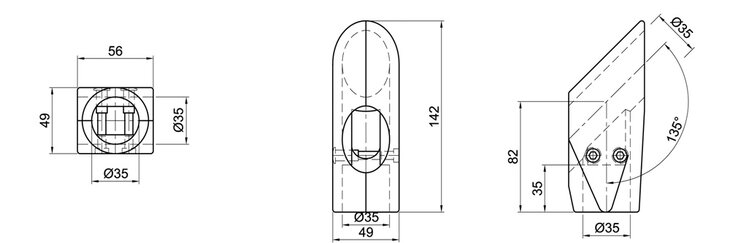 Suporte articulado 35 x 35, opcionalmente 90° ou 180°
