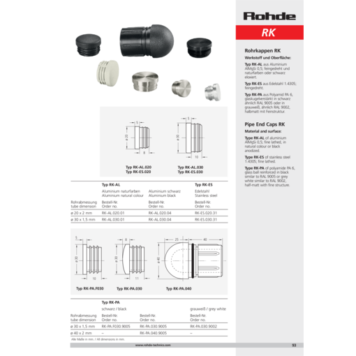 Tip RK-AL, hassas tornalı alüminyumdan ve doğal renklerde veya siyah eloksal kaplama.
