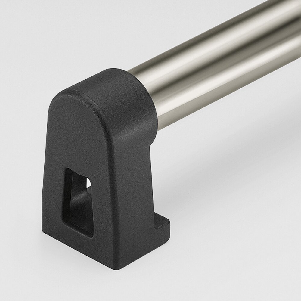 Tutamak kolu, yüksek dayanıklılıkta, cam bilye takviyeli poliamid malzemeden; RAL 9005 benzeri siyah renkte, ince dokulu yarı-mat. Bağlantı boruları alüminyumdan, AIMgSi 0,5. Alternatif olarak asal çelik, Hammadde No. 1.4301 veya mat-parlak krom kaplama çelik.