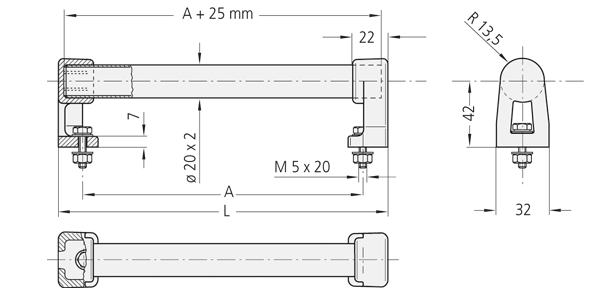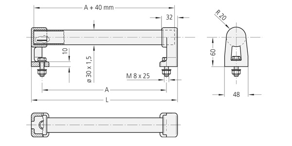| Ürün Egimli tutamak kolu, sag ve sol, tespitleme malzemesi ile | Model sağ |
