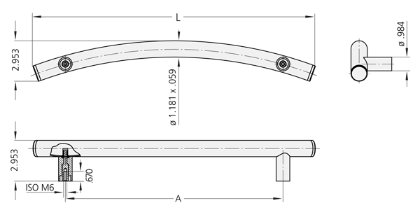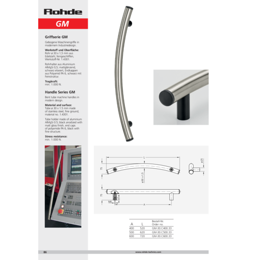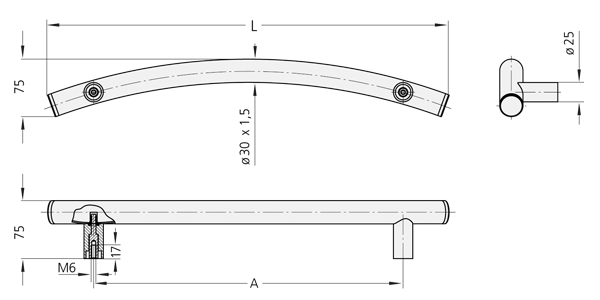 Paslanmaz çelik boru ø 30 x 1,5 mm, ince zımparalı, malzeme no. 1.4301. AlMgSi 0,5 alüminyumundan mamul boru braketi; mat-parlak siyah eloksal kaplama, poliamid PA 6 uç başlıklar, ince strüktür ile siyah.