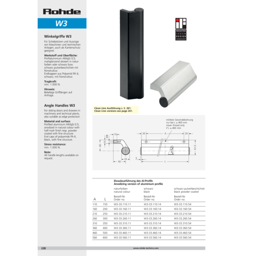 Profil alüminyum AlMgSi 0,5. Uç başlıklar poliamid malzemeden, siyah, ince dokulu.
